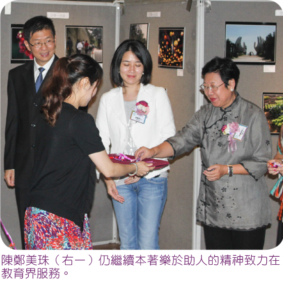 陳太退休多年,仍繼續本著樂於助人的精神致力在教育界服務,裝備新一代的領袖,她直言「有甚麼我能幫忙,我一定樂意去做!」